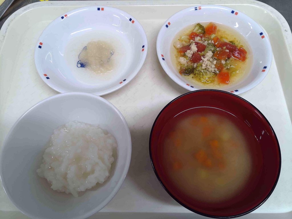 お子さんの咀嚼力や食べる様子を見て食材の大きさやなめらかさなどを変えているので写真は一例になりますが